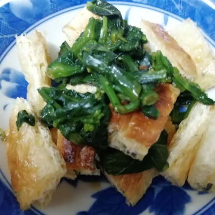 春を食べよう 花つき小松菜と焼き油揚げの和え物 レシピ 作り方 By Hirorin0413 楽天レシピ